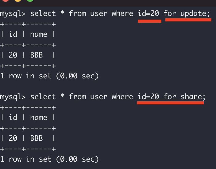 id가 20인 행에 대해서, 잠금 요청을 하면 모두 성공적으로 얻게 됩니다.