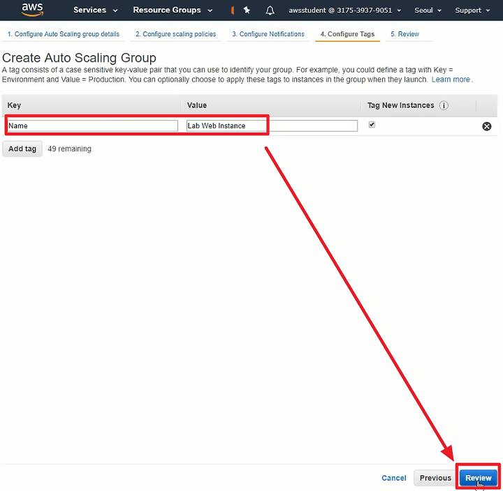 1) Key : Name , Value : Lab Web Instance