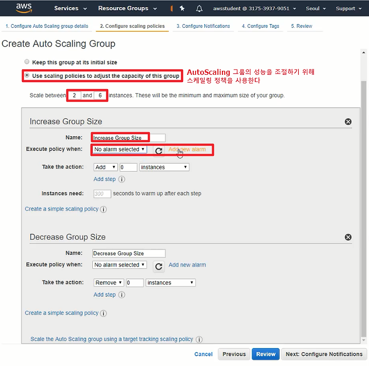 1) Use Scaling policies to adjust the capacity of this group 를 체크한다