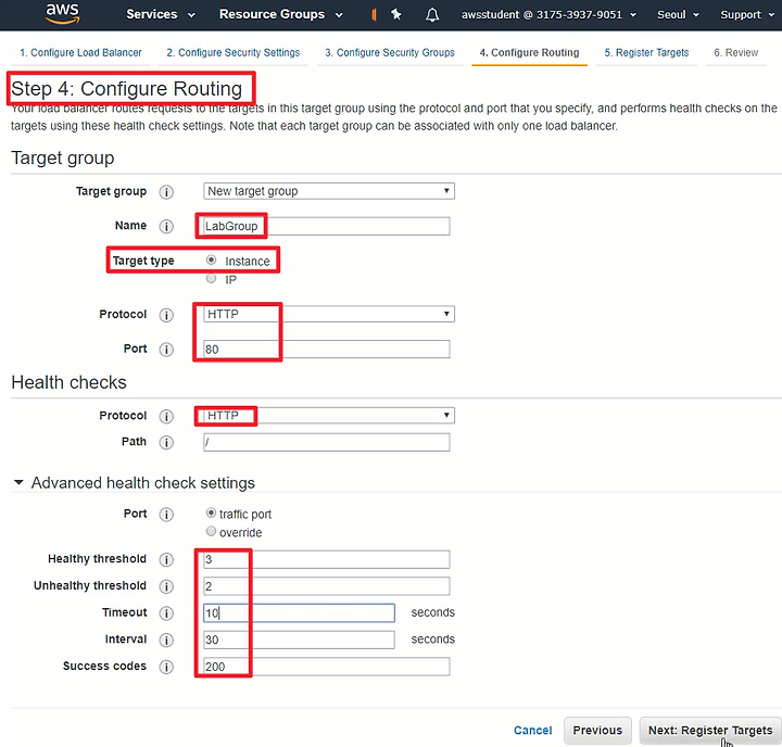 Target Group : New target Group <= 새로운 타켓 그룹을 생성하여 지정한다