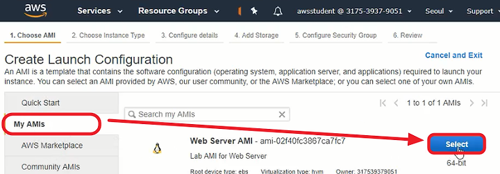 2) 맨처음 생성했던 Web Server AMI를 Select한다