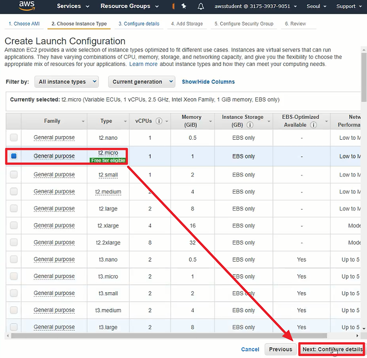1) t2.micro를 선택