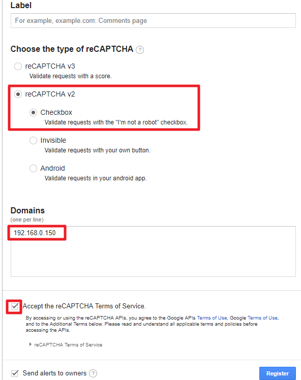 3. reCAPTHCA v2 를 체크하고 Checkbox를 체크한다