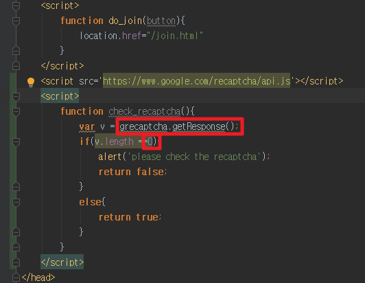 1. recaptcha 체크 함수를 만든다