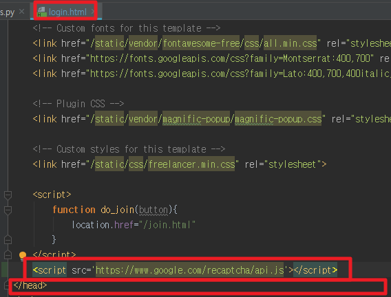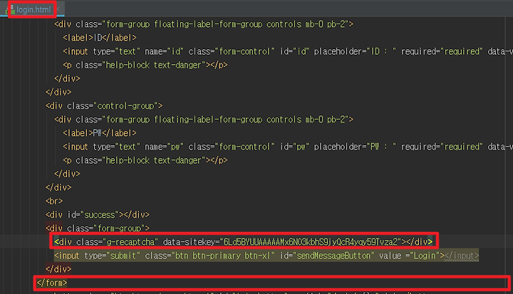 4. reCAPTCHA를 필요로 하는 페이지에서 코드를 추가한다